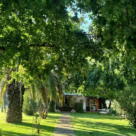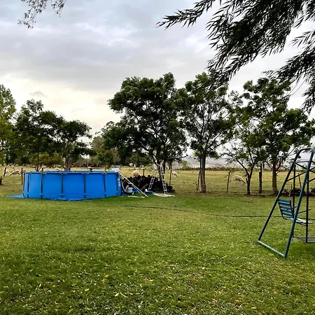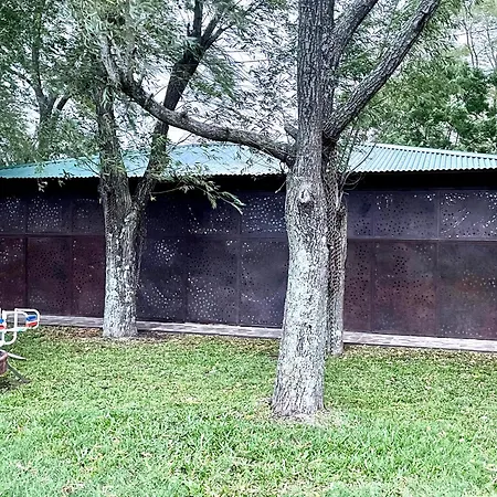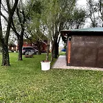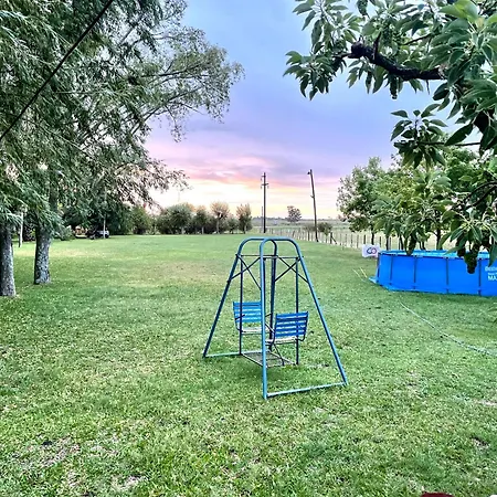 De 1-slaapkamer El Campo - Cabana 2 Gualeguaychú beschikt over een terras op de tuin en een zwembad.